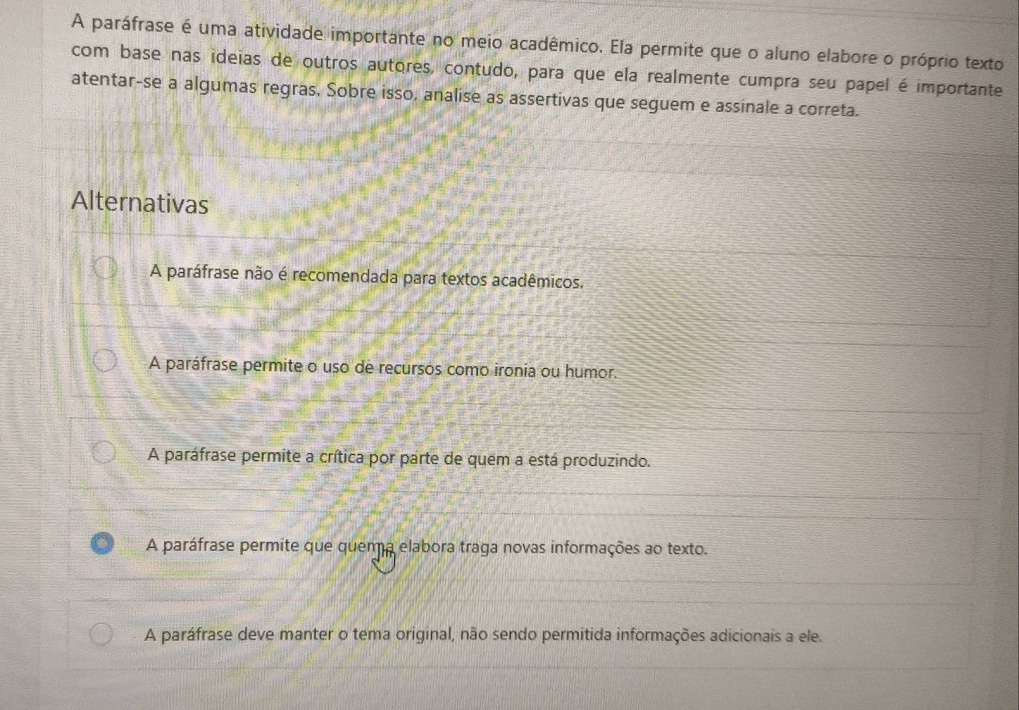A paráfrase é, portanto, uma ferramenta valiosa para o desenvolvimento do pensamento crítico, evidenciando a capacidade de síntese, interpretação e expressão textual, indispensáveis para o êxito em qualquer contexto acadêmico.