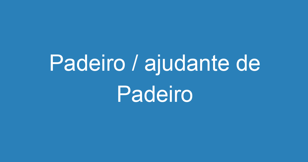 Padeiro / Ajudante De Padeiro | Emprega São José - Vagas De Empregos Em