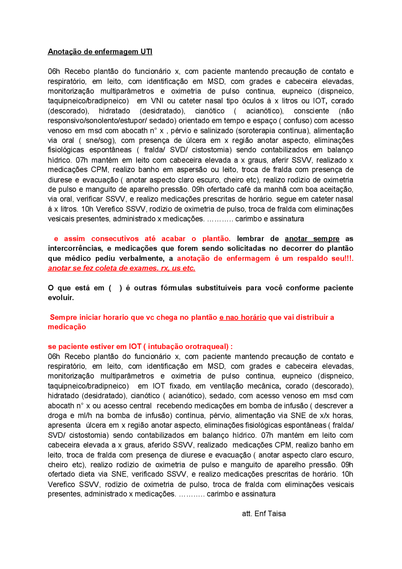 Exemplo De Anotação De Enfermagem Uti - REVOEDUCA