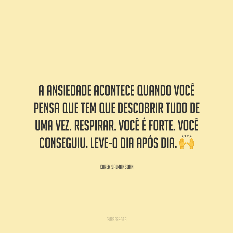 É importante lembrar que cada pessoa vivencia a ansiedade e a depressão de forma diferente, então o que é reconfortante para um individuo pode não ser para outro. Porém, existem algumas frases gerais que podem ser úteis: