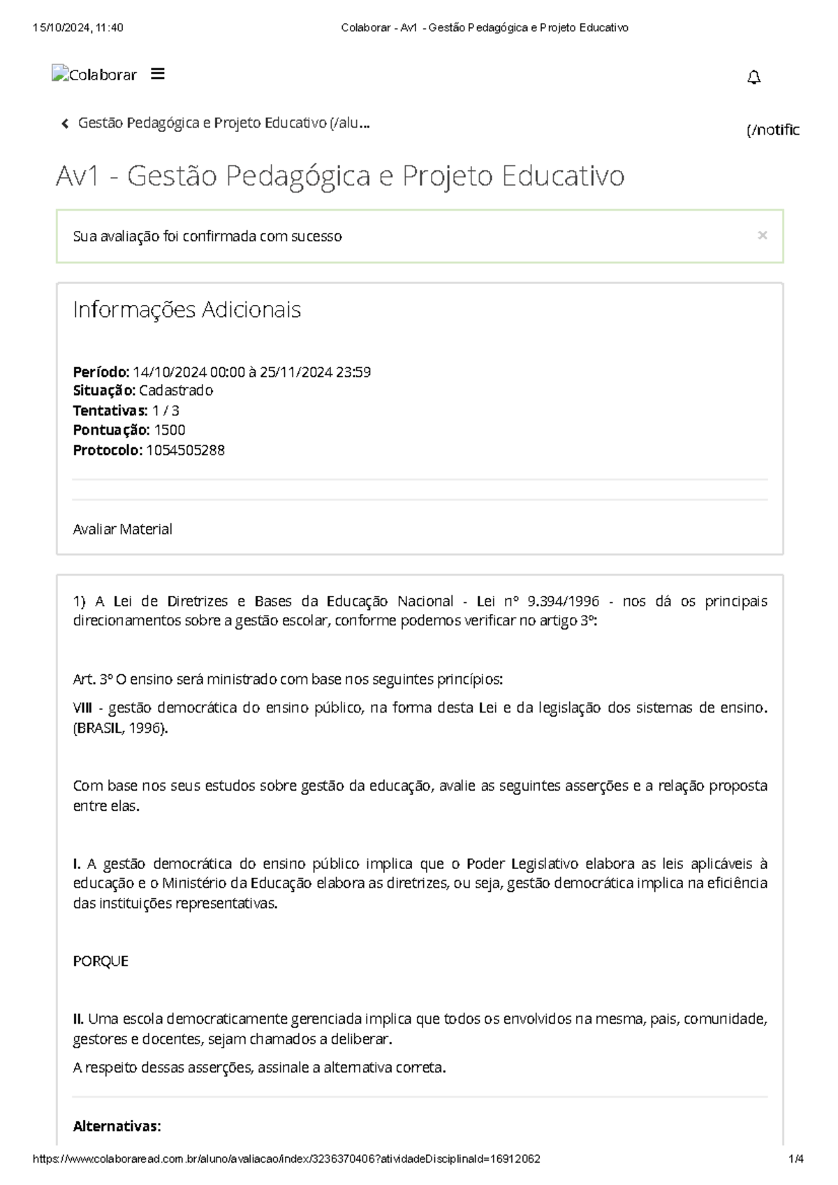 2024 - Av1 - Gestão Pedagógica e Projeto Educativo - Gestão Pedagógica