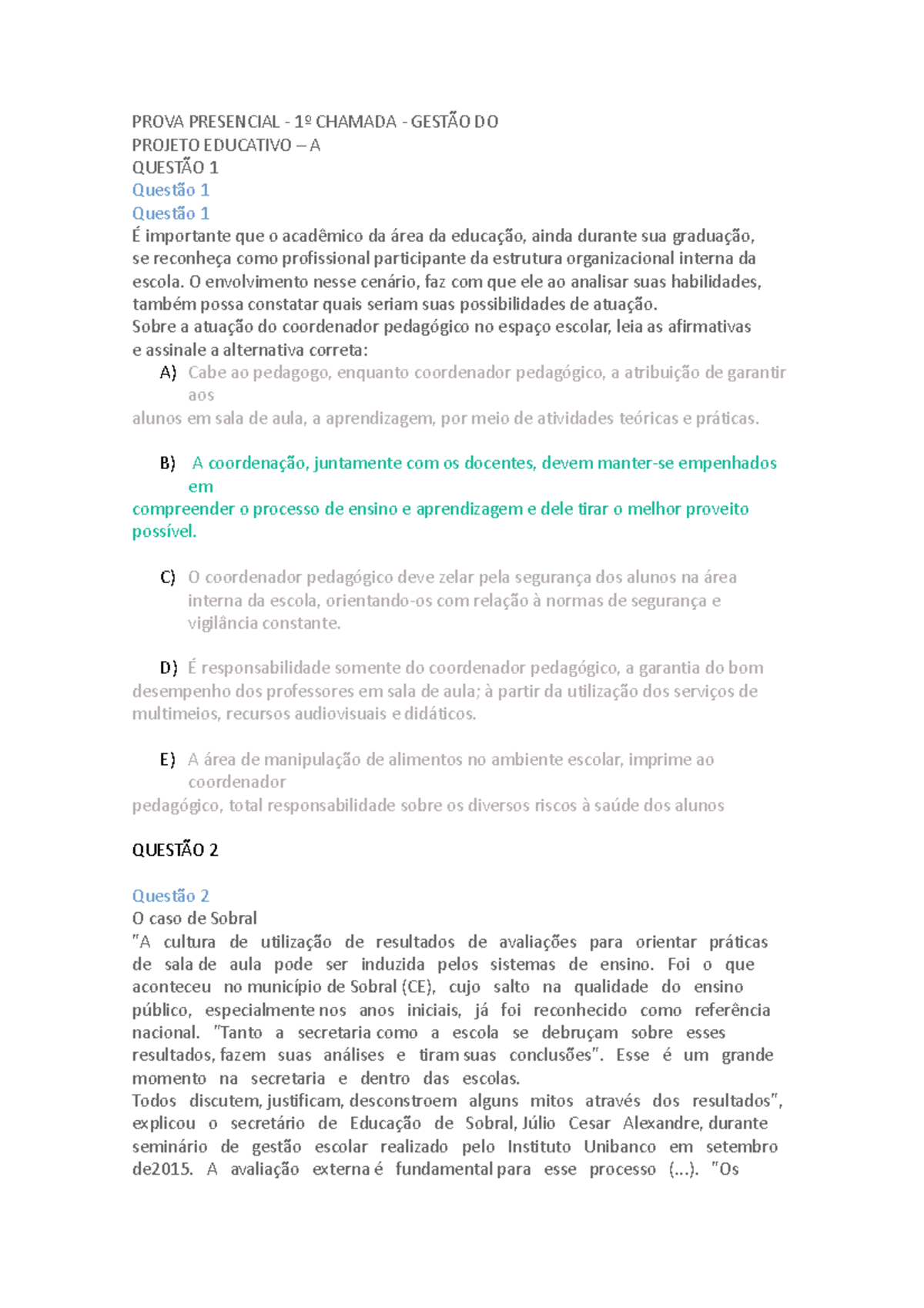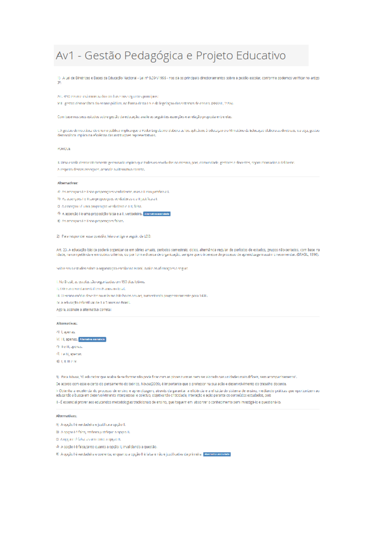 Av1 Gestão Pedagógica E Projeto Educativo
