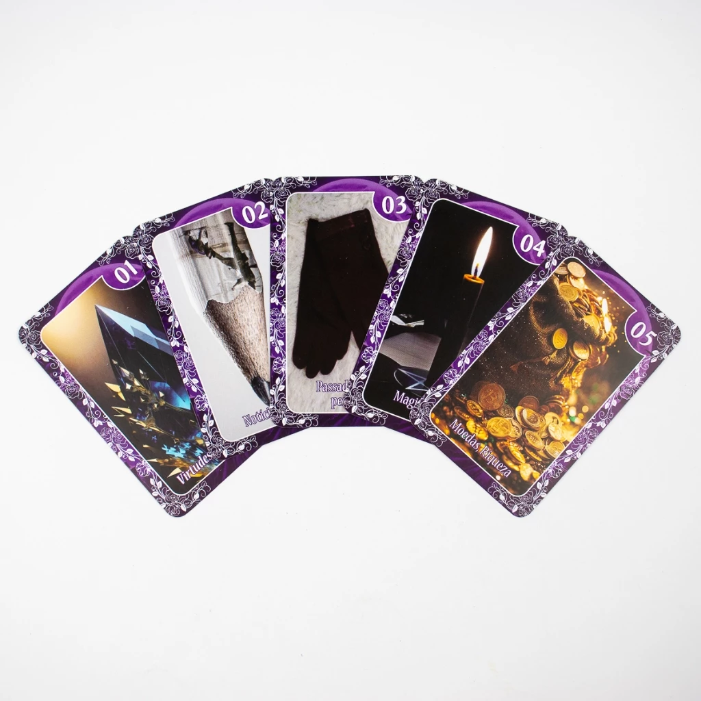As cartas também são usadas em práticas adivinatórias, como a "lecção de cartas de Maria Mulambo", onde o baralho serve como um espelho para a alma, revelando as influências que moldam o destino do consulente. É um método que busca conectar o mundo material com o espiritual, oferecendo orientação e compreensão sobre as situações presentes na vida.