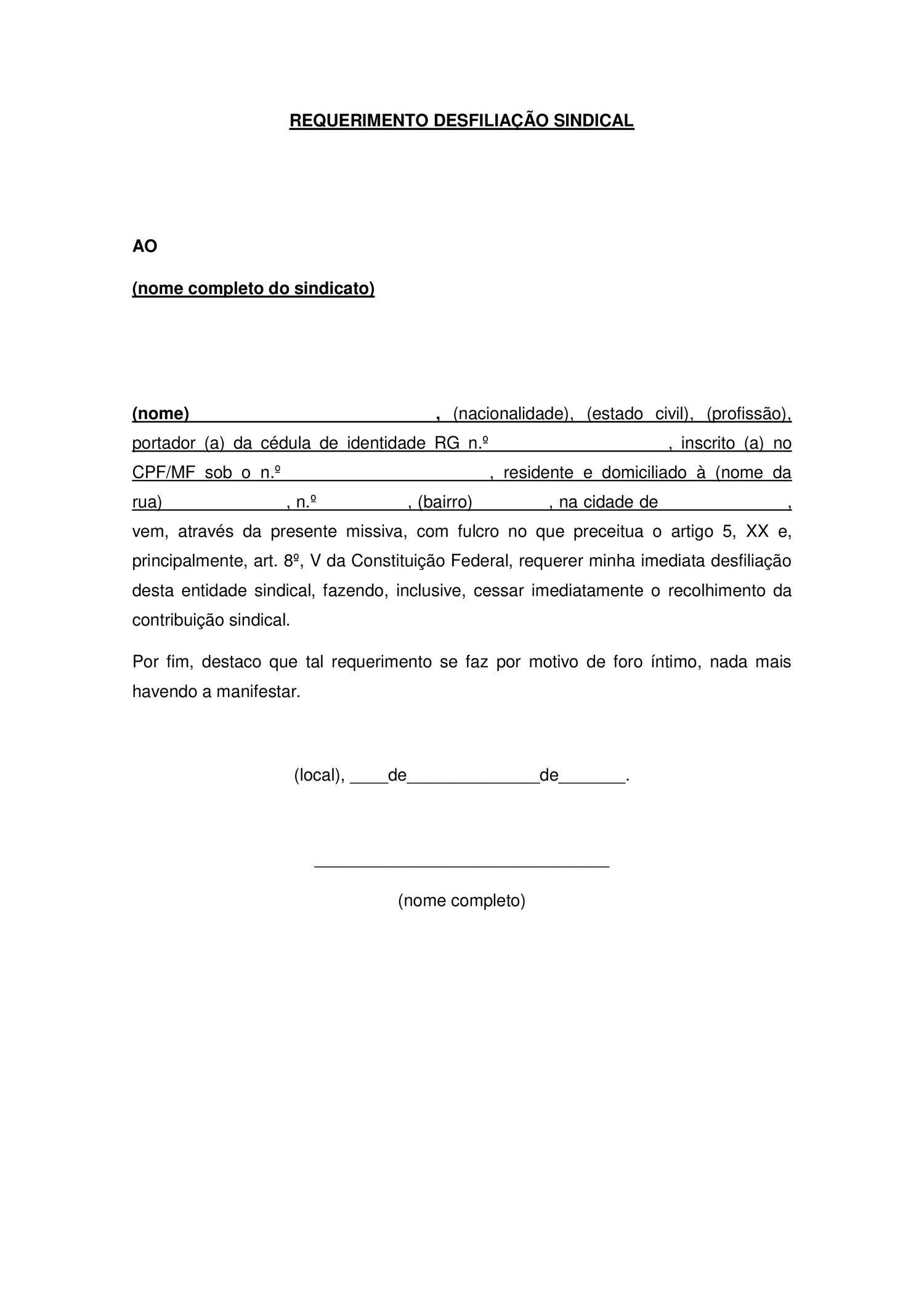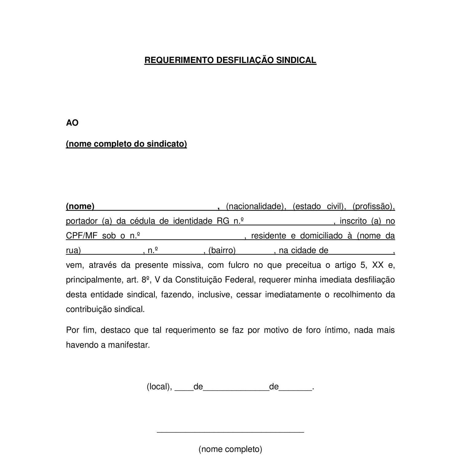 Carta De Desfiliação Sindical