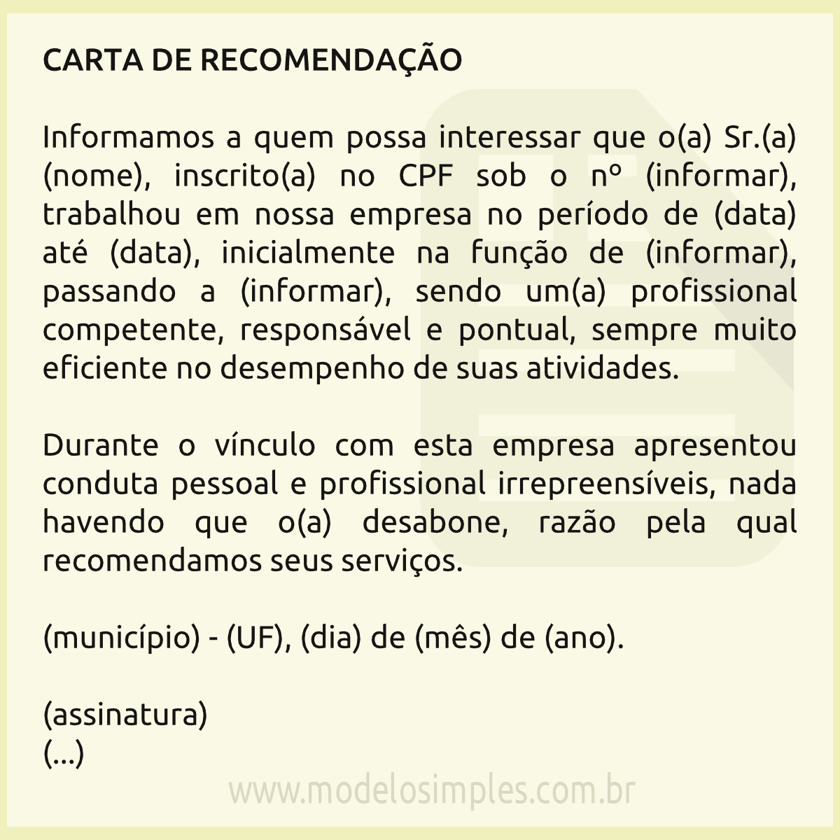 Ao elaborar uma carta de recomendação, o redator assume o papel de testemunha, comprovando suas competências e ética profissional. Para alcançar máxima eficácia, a carta deve ser escrita com clareza, objetividade e entusiasmo, demonstrando com convicção porquê você é um candidato ideal.