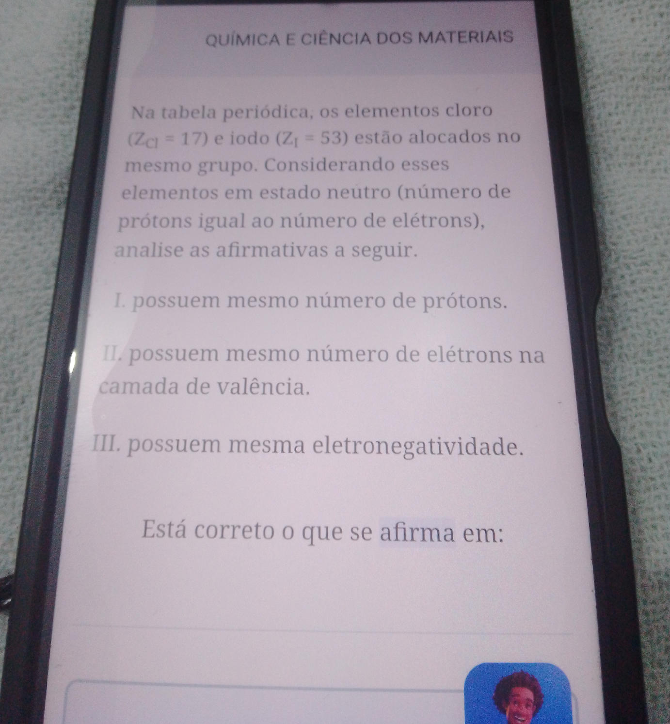 Pertence ao grupo 17, conhecido como halogênios, e é um não-metal altamente reativo.