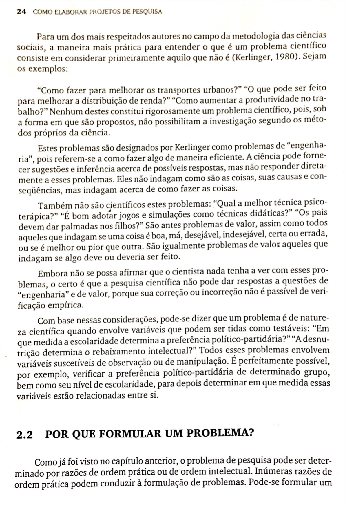 Algumas dicas para desenvolver um bom problema de pesquisa incluem: