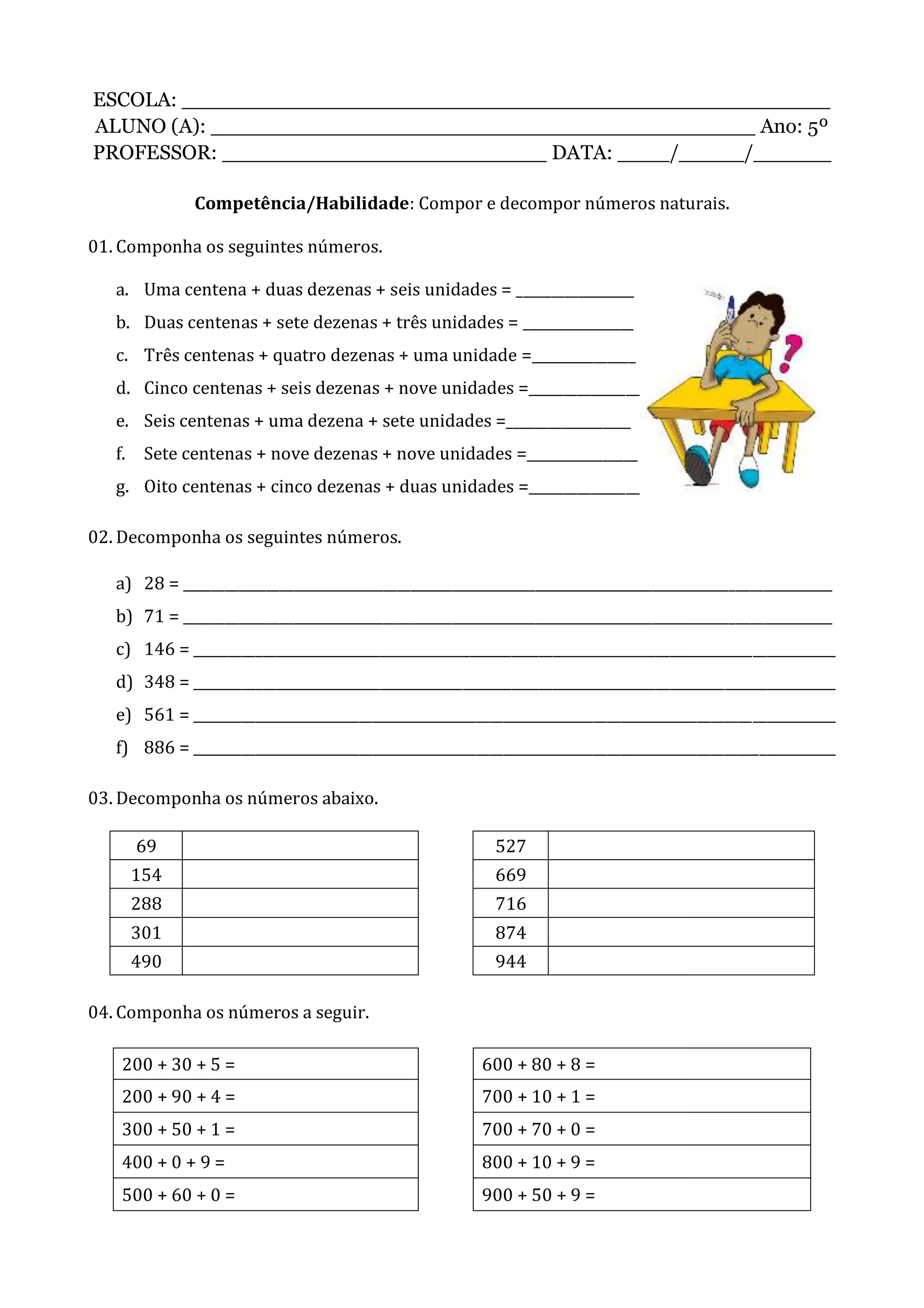 Componha Os Números A Seguir 200 + 30 + 5