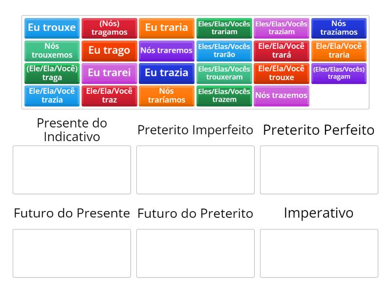 Identifique a pessoa do verbo (Vir, Saber, Trazer) - Group sort