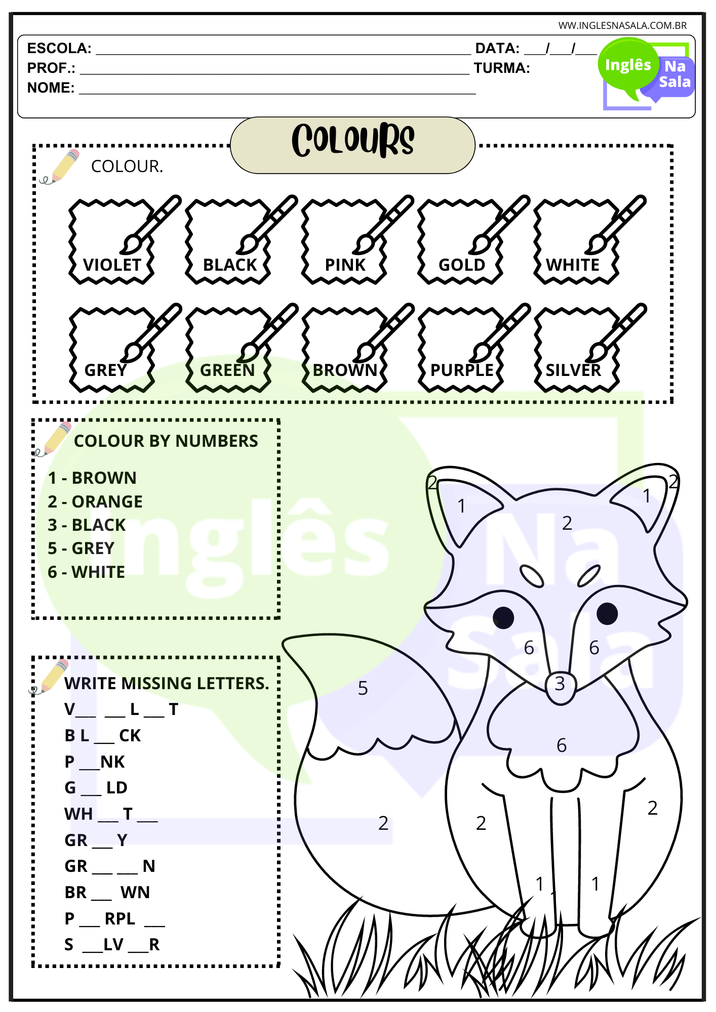 Atividades Das Cores Em Ingles E