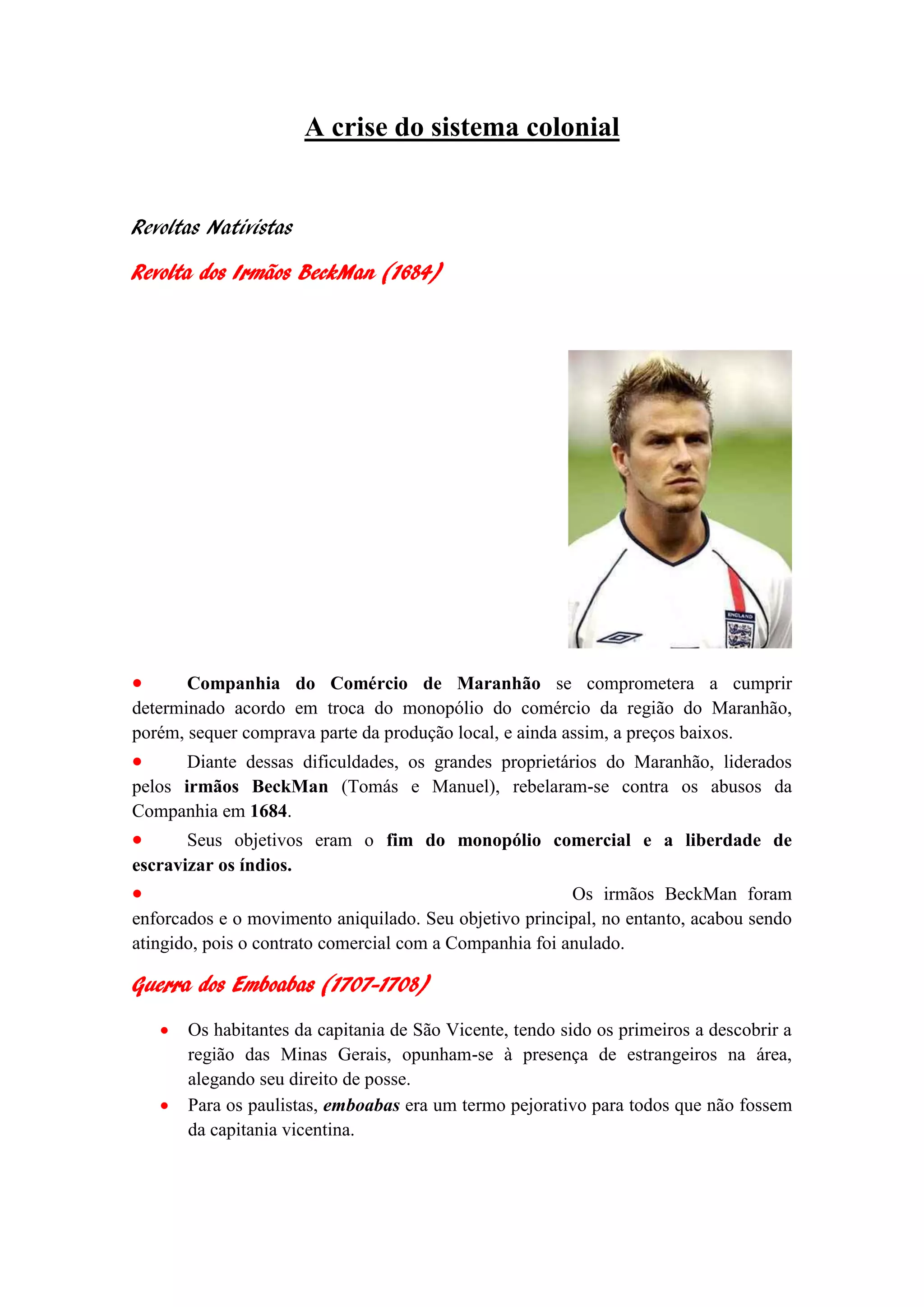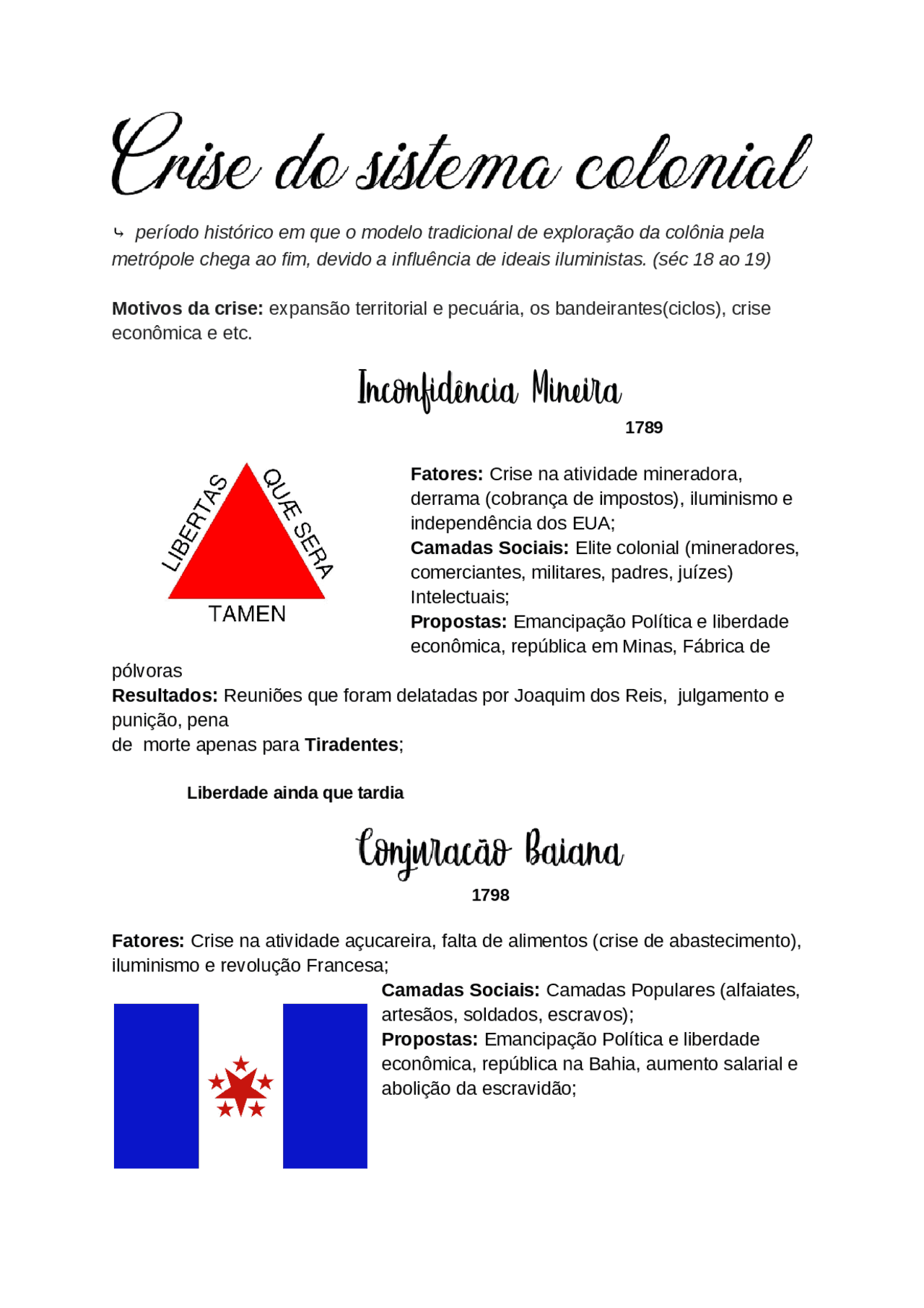 SOLUTION: RESUMO: CRISE DO SISTEMA COLONIAL - Studypool