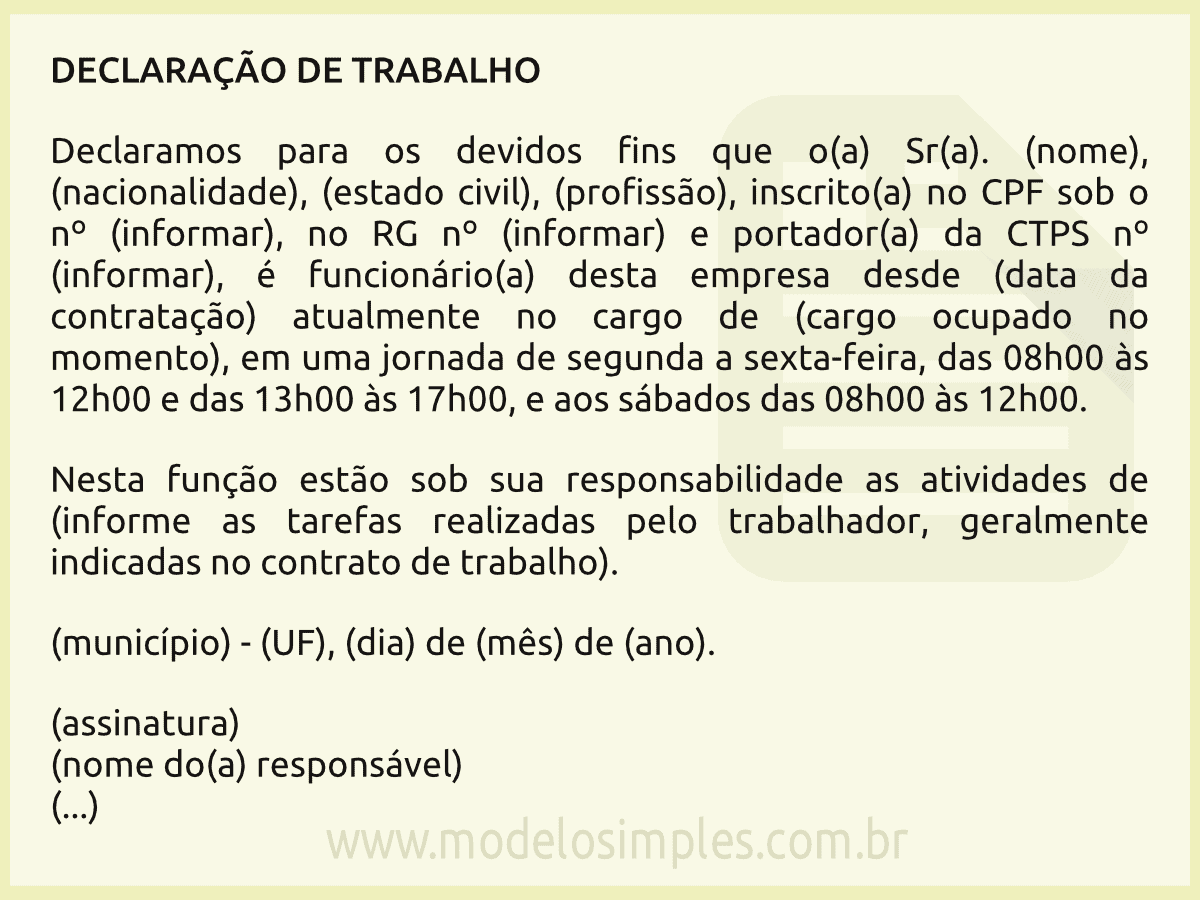 Declaração De Trabalho Simples Para Imprimir - NAZAEDU