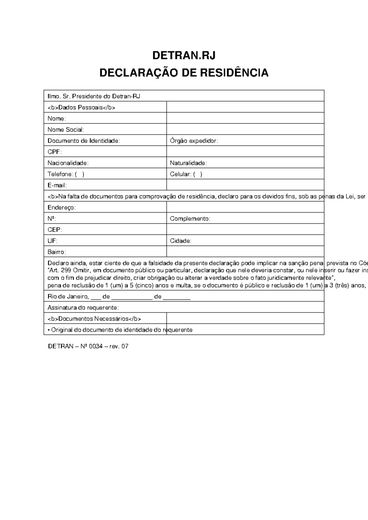 Declaração De Residencia Do Detran Rj - RETOEDU