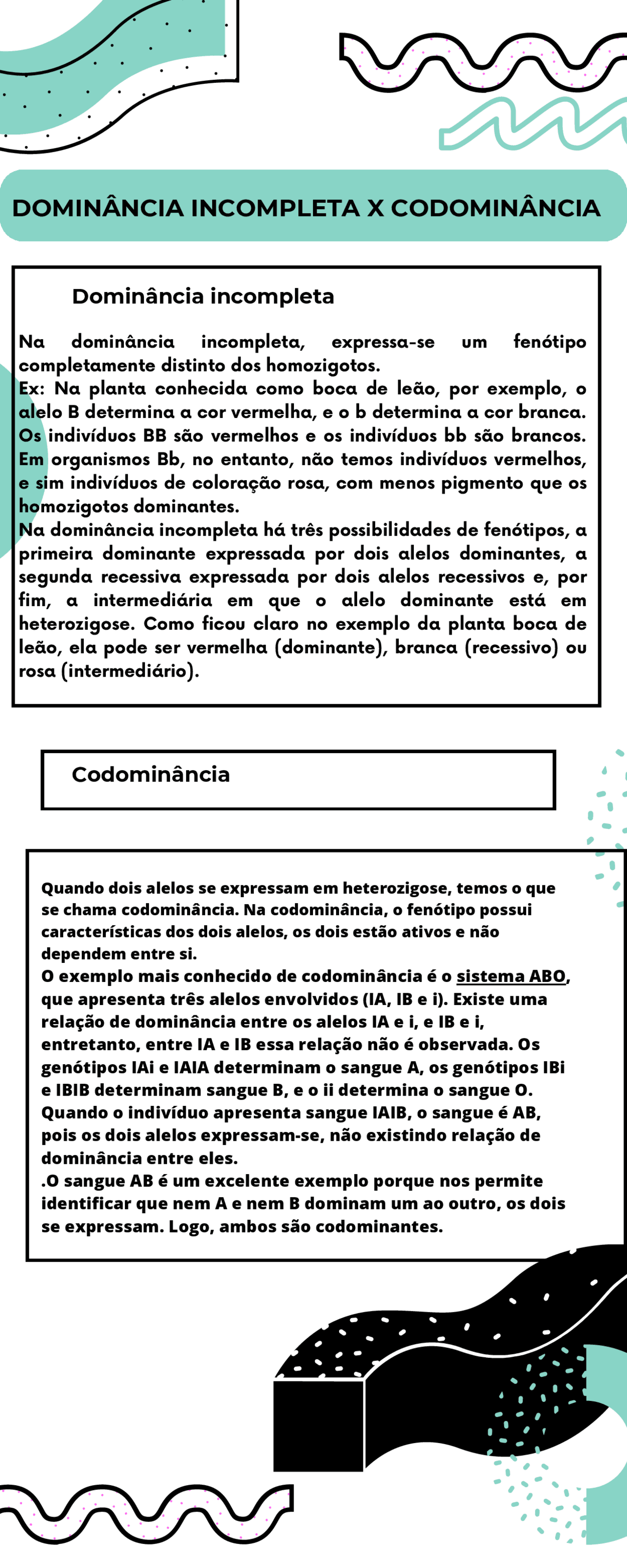 Dominância incompleta x Codominãncia | Resumos Biologia | Docsity