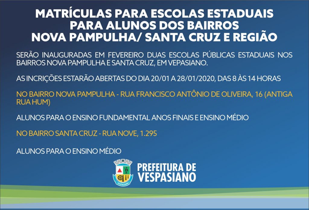 Novas escolas estaduais | Prefeitura Municipal de Vespasiano