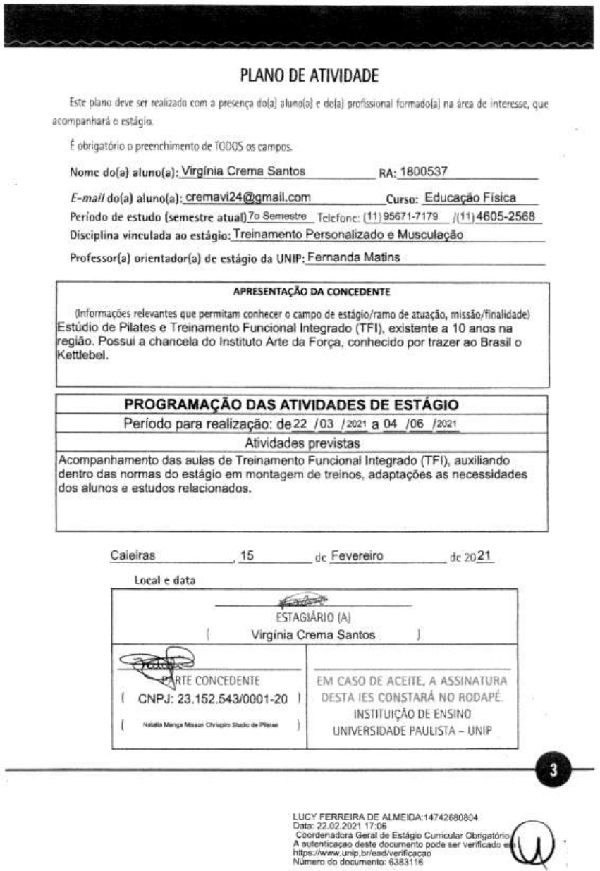 ESTÁGIO ED.FISICA 2021 UNIP EAD - Estágio Supervisionado I