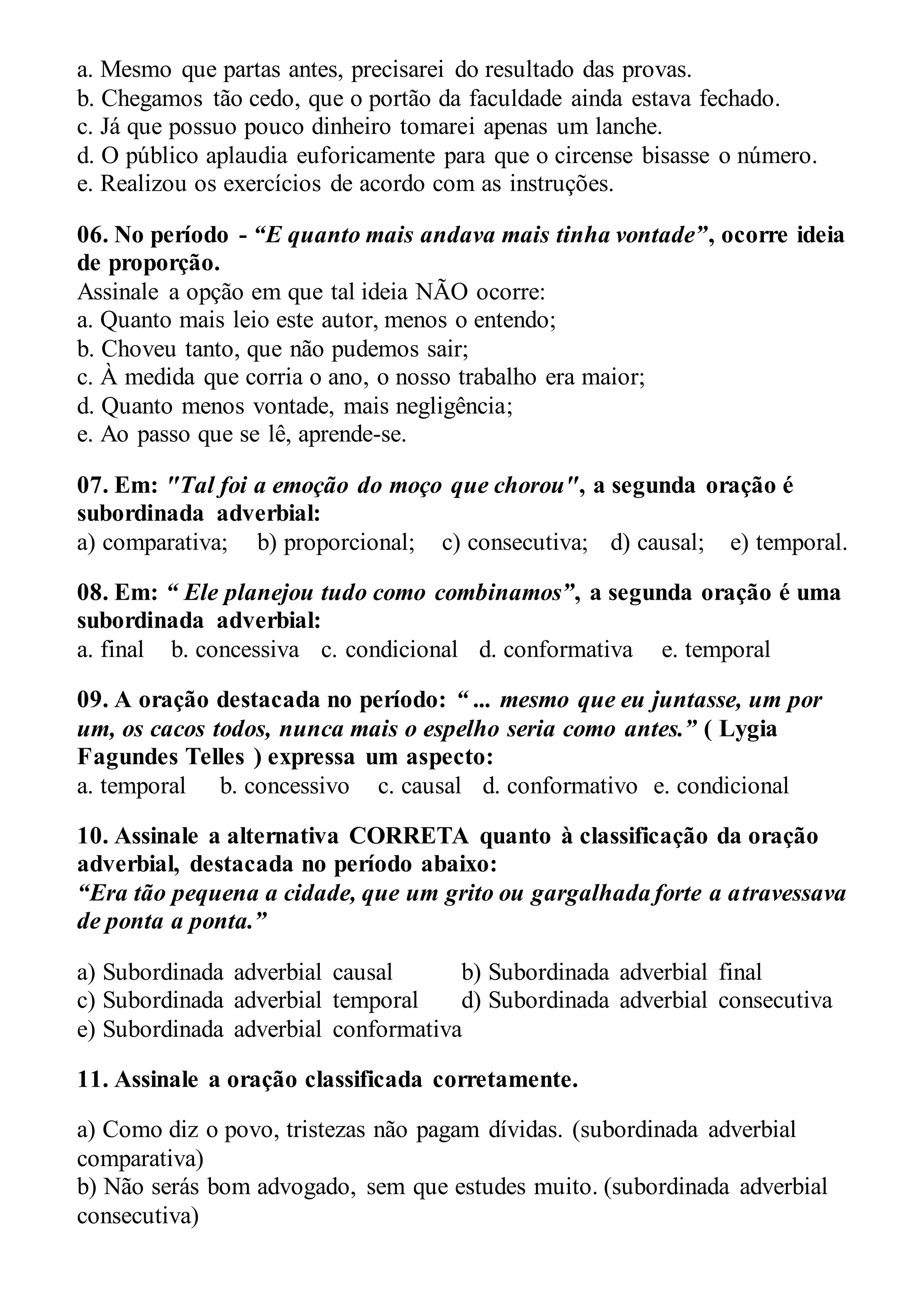 Exercício Orações Subordinadas Adverbiais