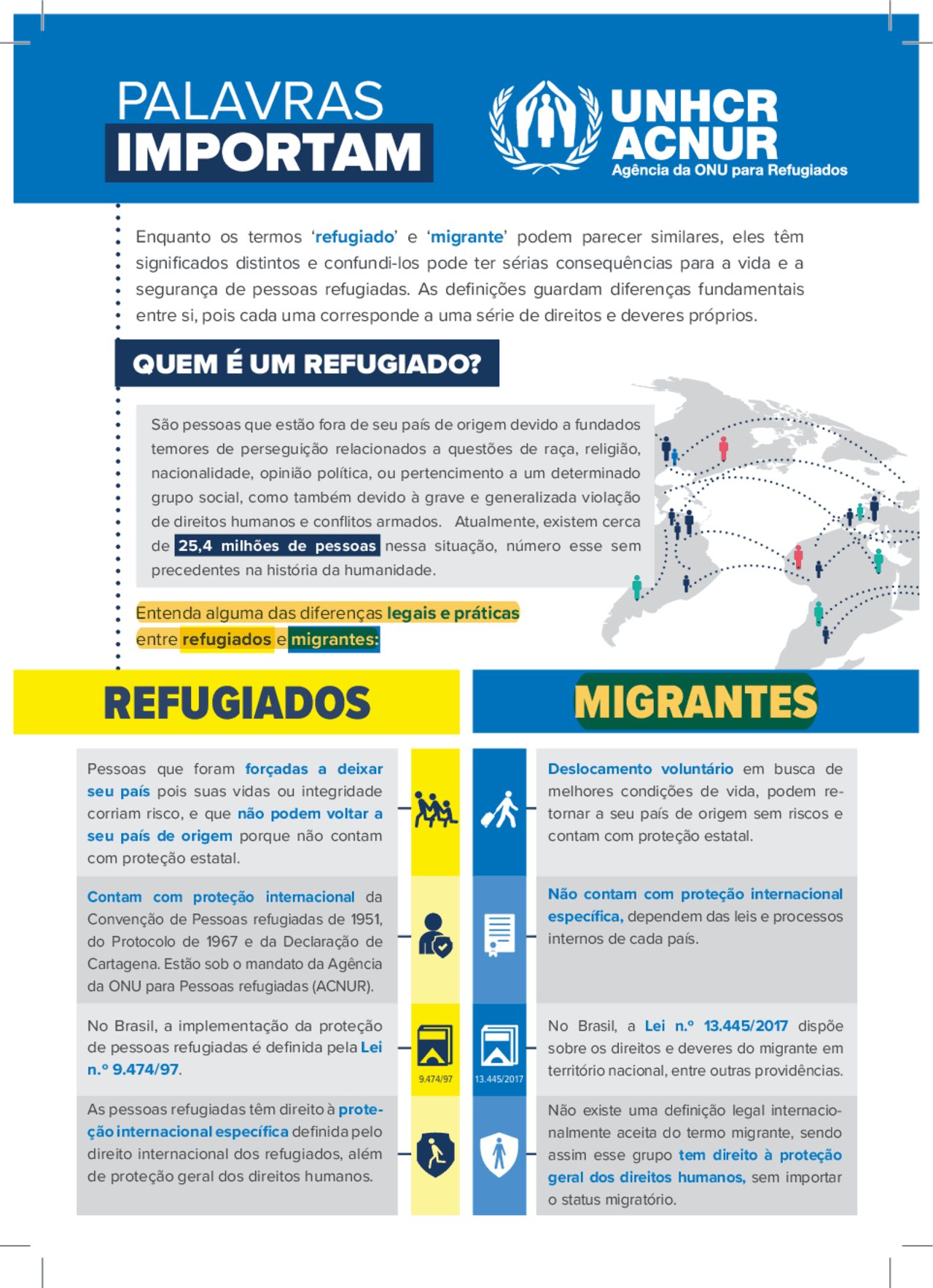 O termo "migração" é frequentemente usado de forma intercambiável com "refugiabilidade", gerando confusão sobre a distinção entre migrante e refugiado. Embora ambas as categorias englobam indivíduos que deixaram suas casas em busca de novas oportunidades ou segurança, as motivações, as leis aplicáveis e os direitos garantidos à cada um são distintos.