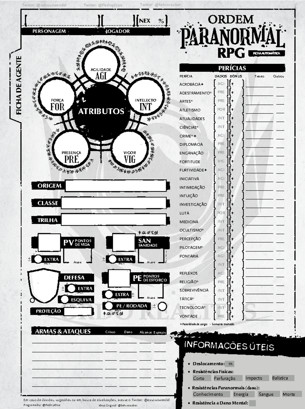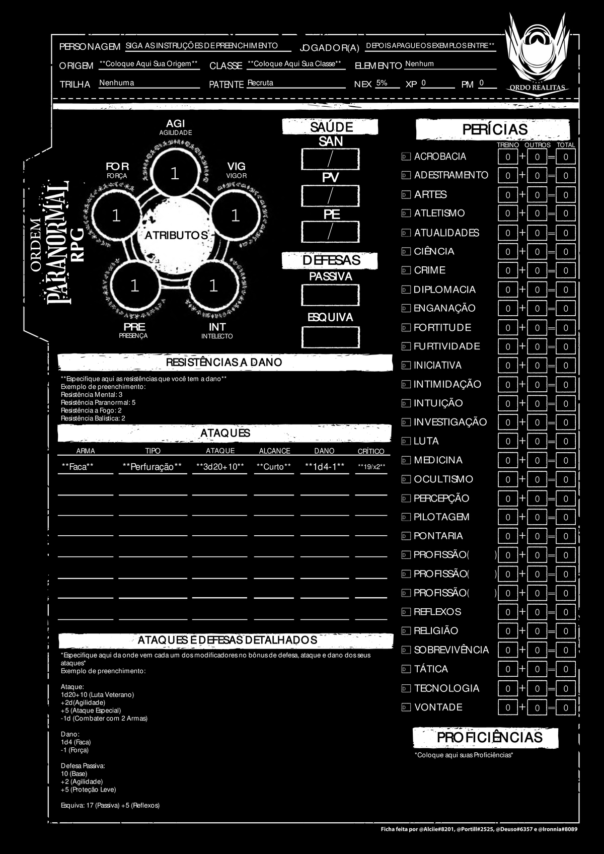 Ficha Ordem Paranormal 1.0 - Engenharia Civil - PUCPR