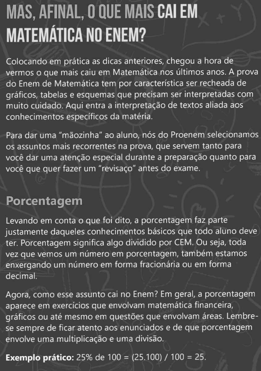 O Exame Nacional do Ensino Médio (ENEM) é uma das maiores barreiras a serem superadas para estudantes brasileiros que sonham com acesso à graduação. A prova avalia conhecimentos em diversas áreas do saber, incluindo, claro, matemática.