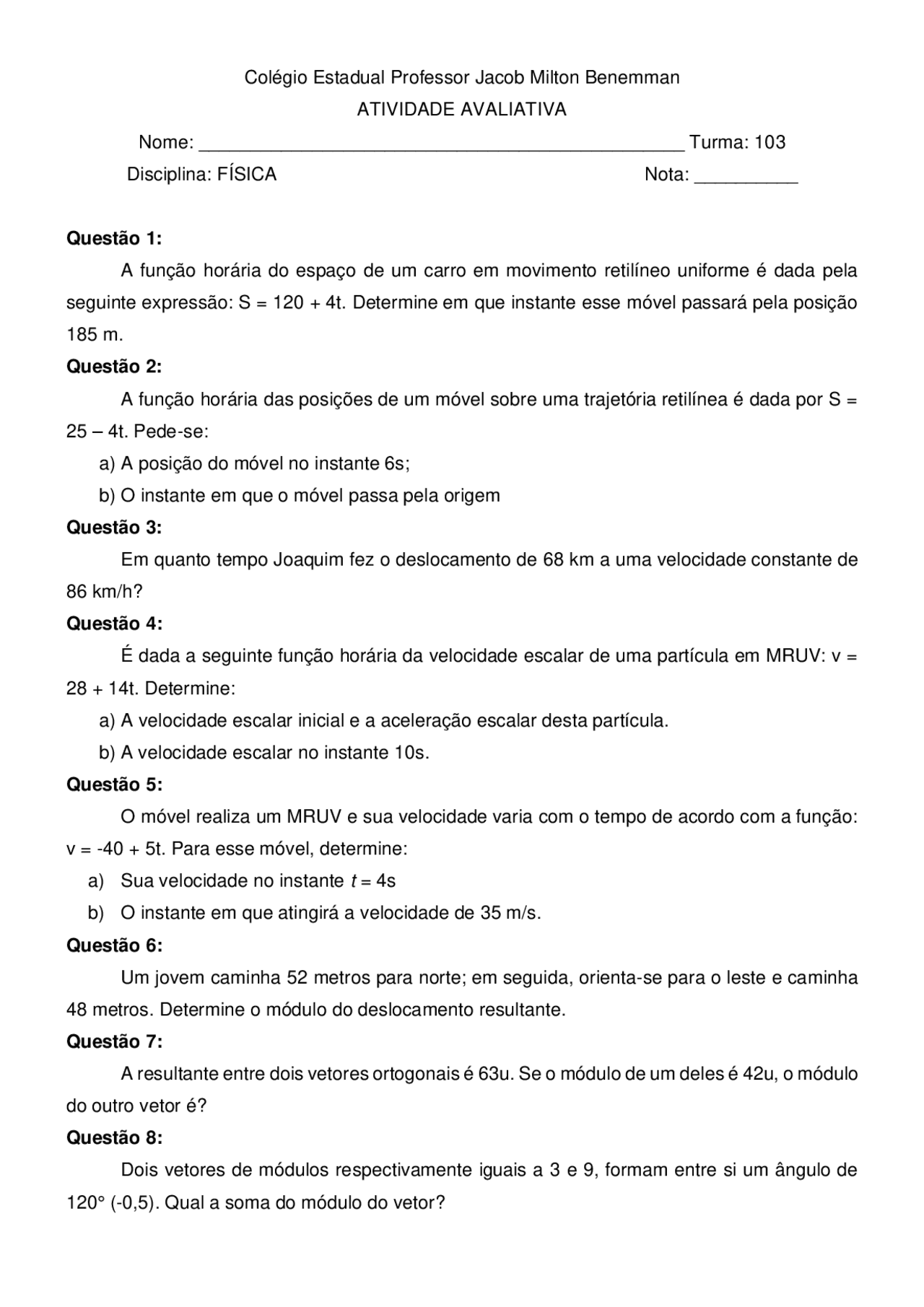**Movimento Uniformemente Acelerado (MUA)**