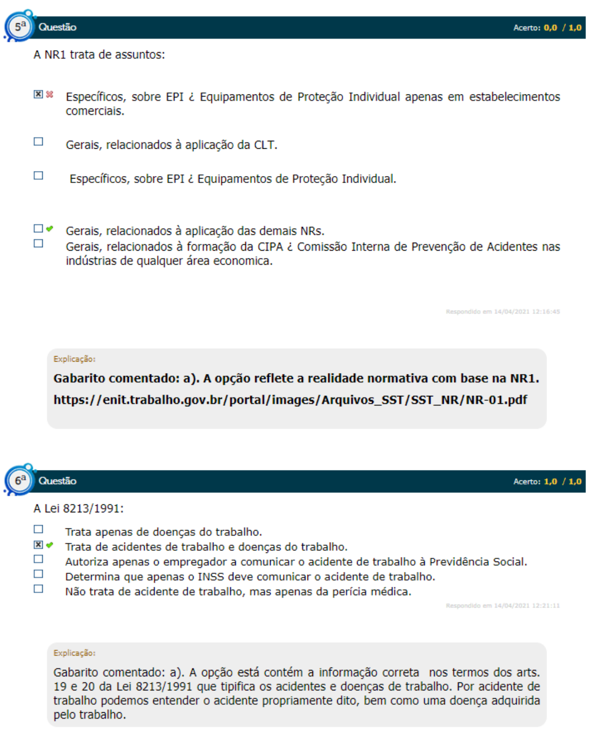 Simulado Av - Gestão da Segurança do Trabalho - Gestão da Segurança do