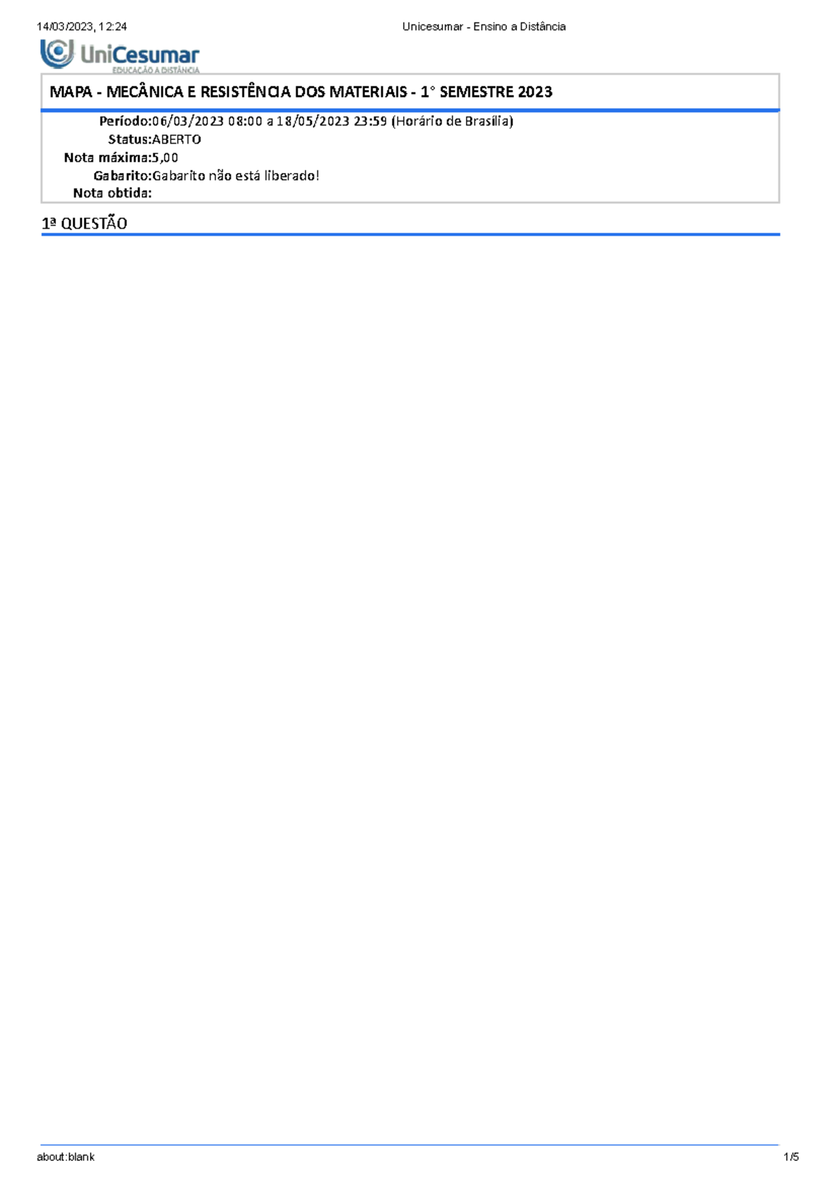 MAPA Resistencia DOS Materiais - MAPA - MECÂNICA E RESISTÊNCIA DOS