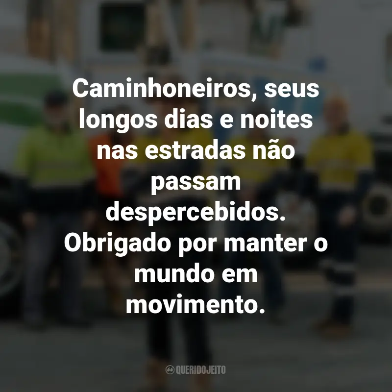 Essas dezenas de homens e mulheres que desafiam as longas jornadas, as adversidades das estradas e a solidão para garantir a fluidez da economia, merecem todo o nosso respeito e reconhecimento.