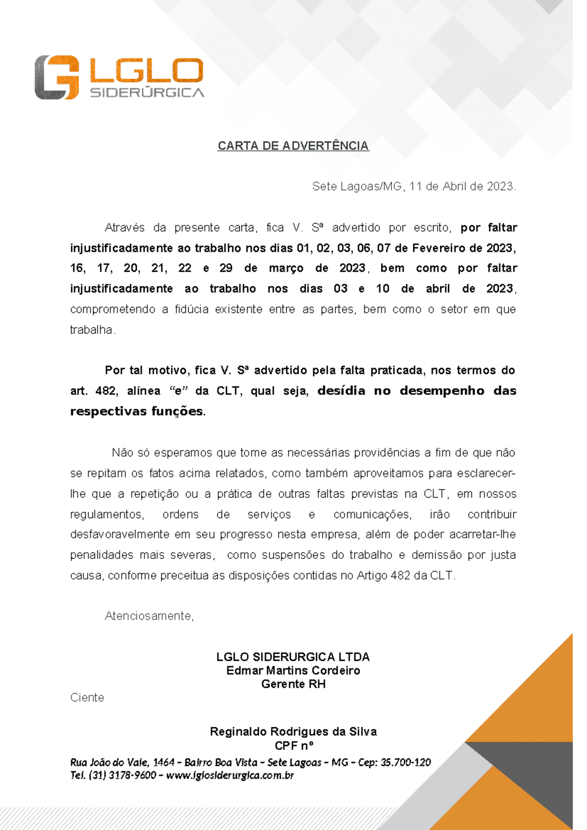 Caso a situação se repita, a advertência por falta injustificada formaliza o registro do problema, preparando o terreno para ações disciplinares mais severas, como suspensão ou até mesmo o desligamento do empregado.