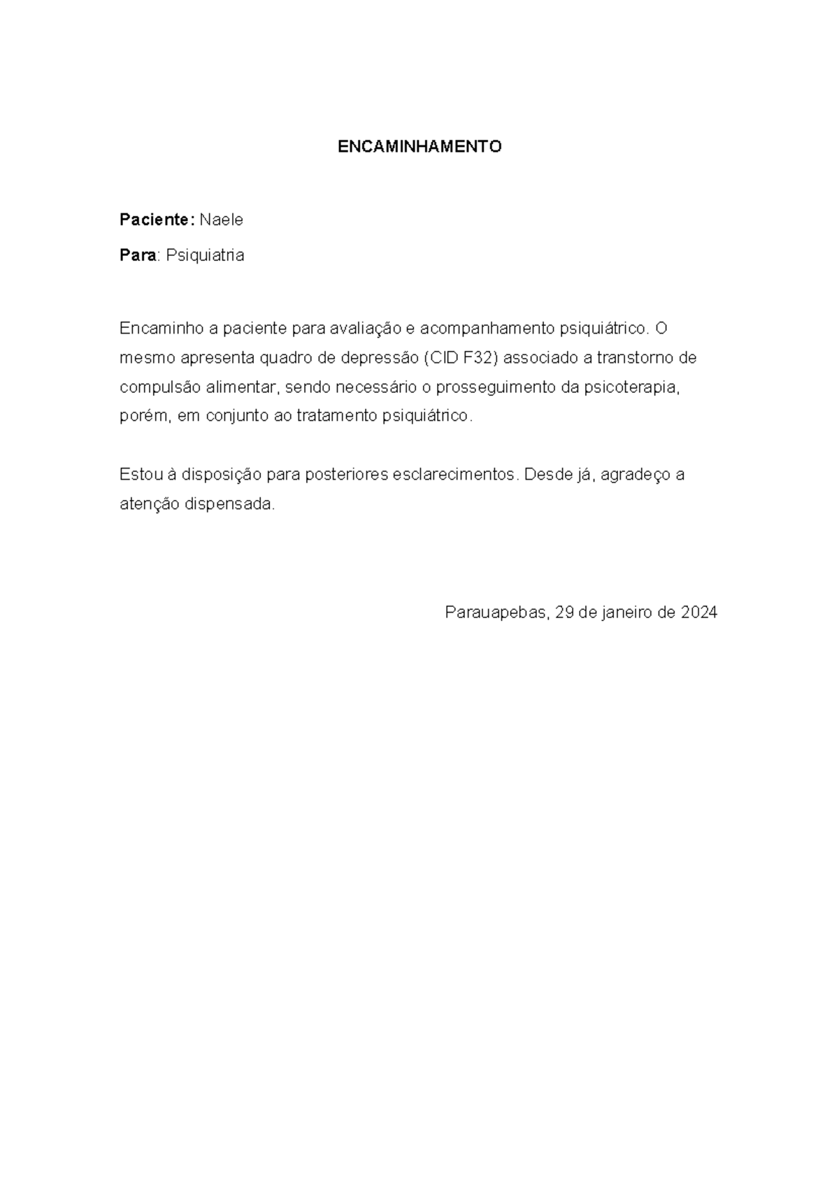 É importante ressaltar que o Modelo de Encaminhamento Psicológico não substitui a consulta de avaliação psicológica. Após receber o encaminhamento, o psicólogo realizará uma entrevista abrangente para compreender a situação do paciente em sua totalidade e construir um plano de tratamento adequado às suas necessidades específicas.