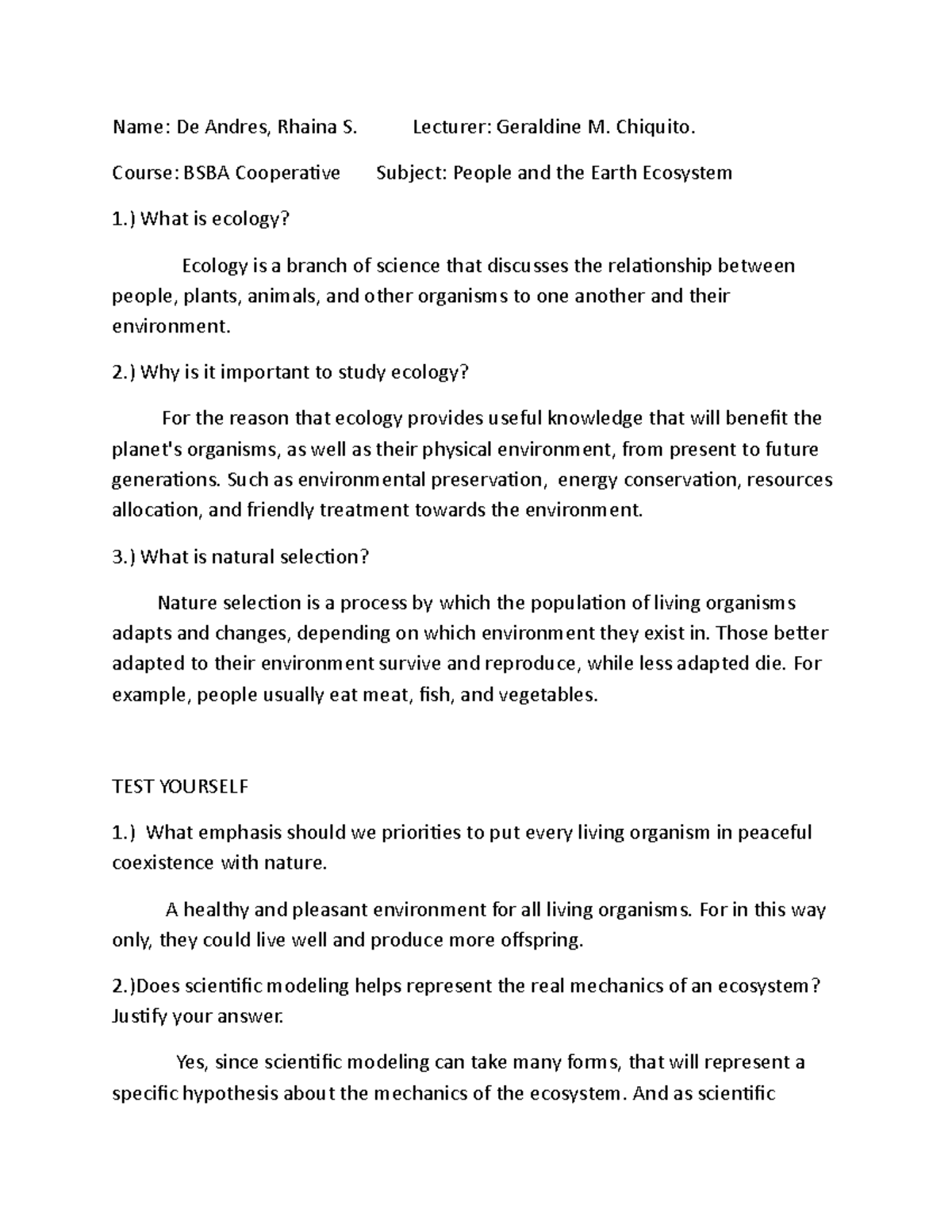PAEE Module 1 Answer - PAEE - Name: De Andres, Rhaina S. Lecturer
