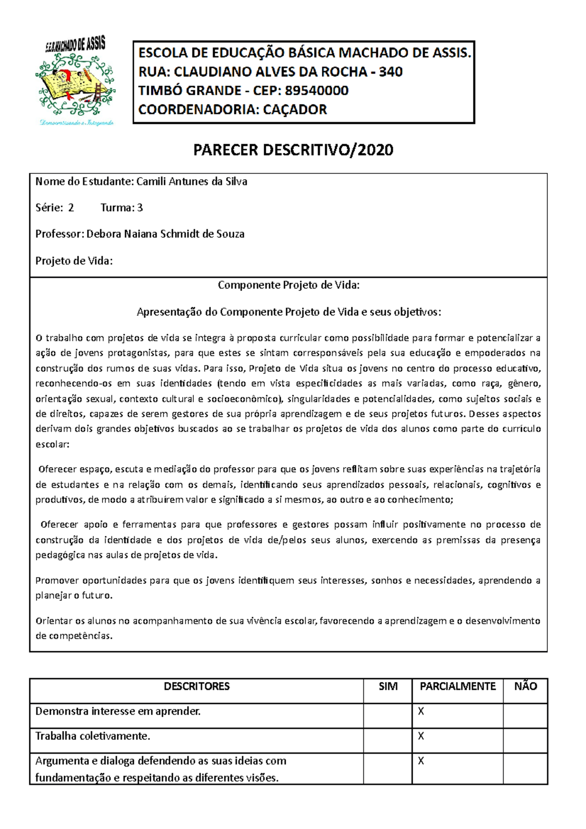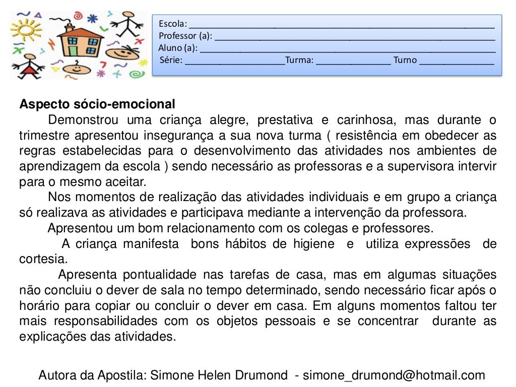 Parecer Descritivo 3 Ano Edubrainaz/modelo De Parecer Descritivo 2 Ano