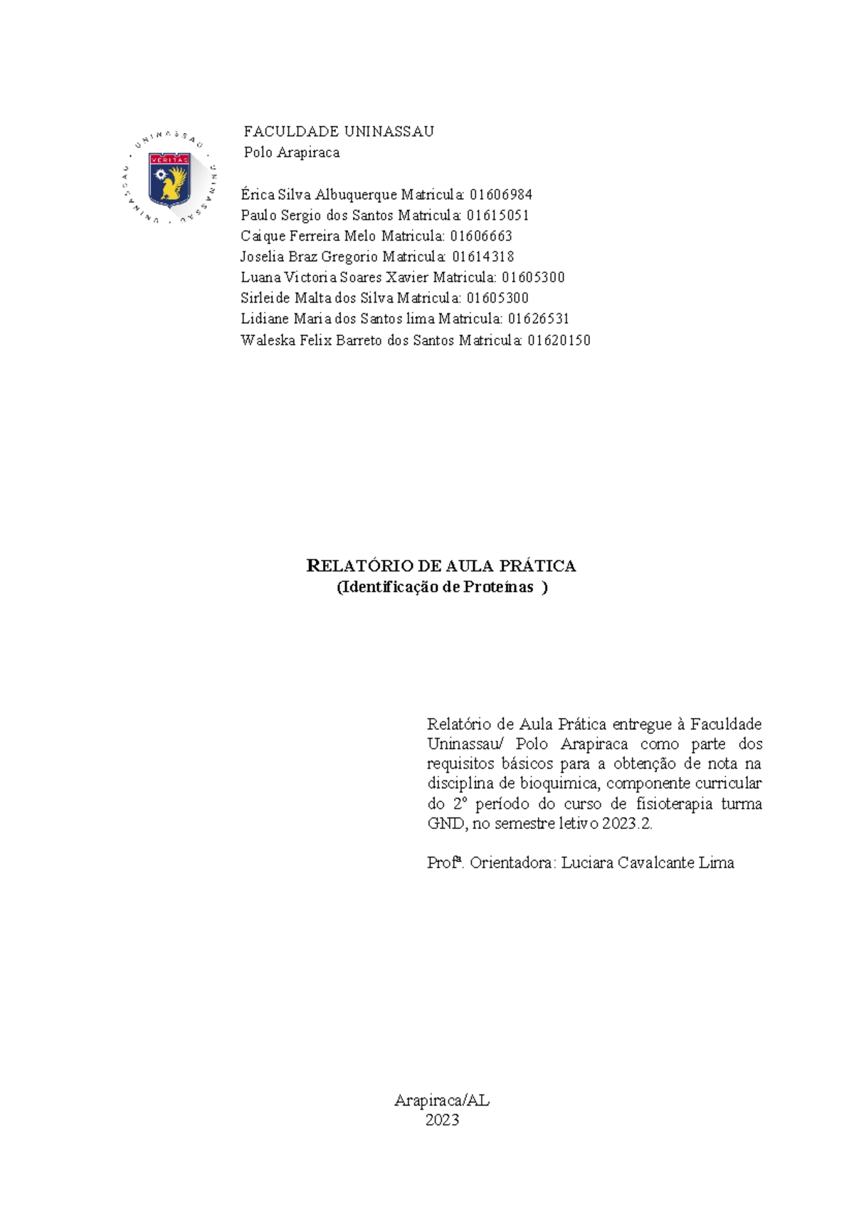 Comece o relatório com informações básicas, como o nome do aluno, o curso, a data da aula prática e o tema abordado.