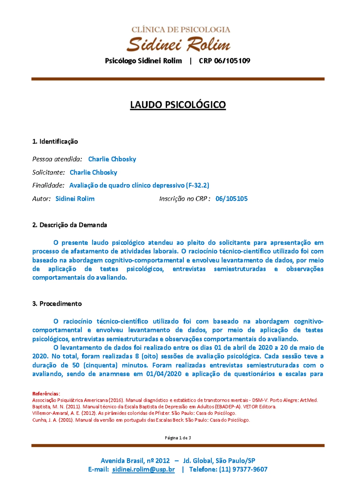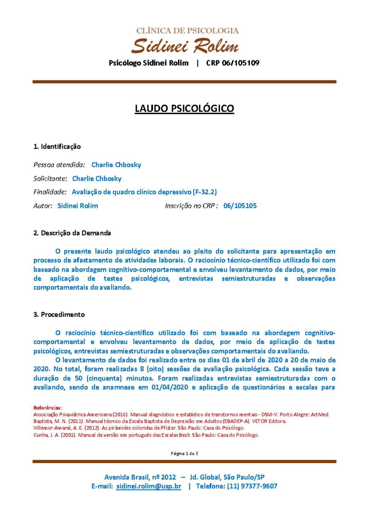Este modelo é utilizado em processos judiciais, como divórcios, processos de adoção, avaliação de capacidade civil, entre outros. O laudo apresenta a avaliação da situação psicológica do indivíduo e a sua relação com a demanda legal em questão.