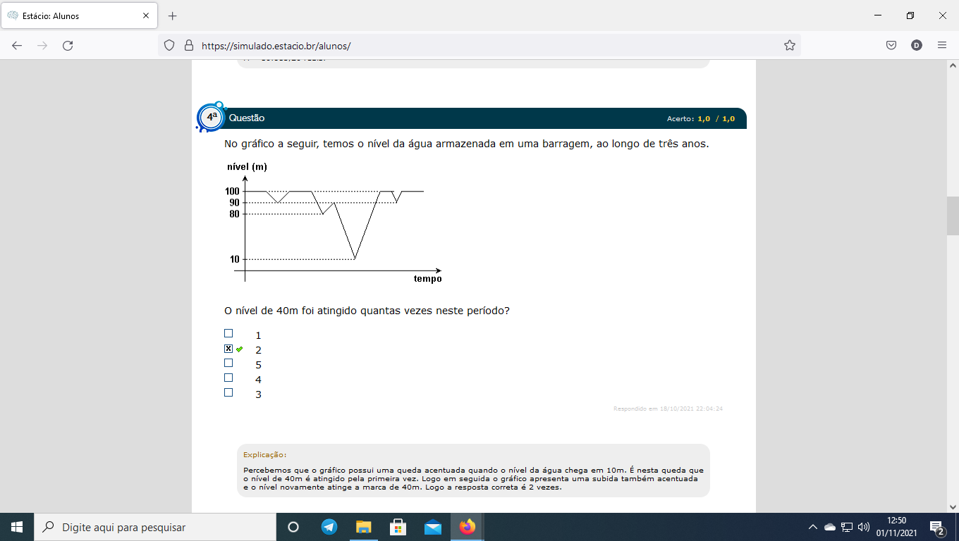 No gráfico a seguir, temos o nível da água armazenada em uma barragem