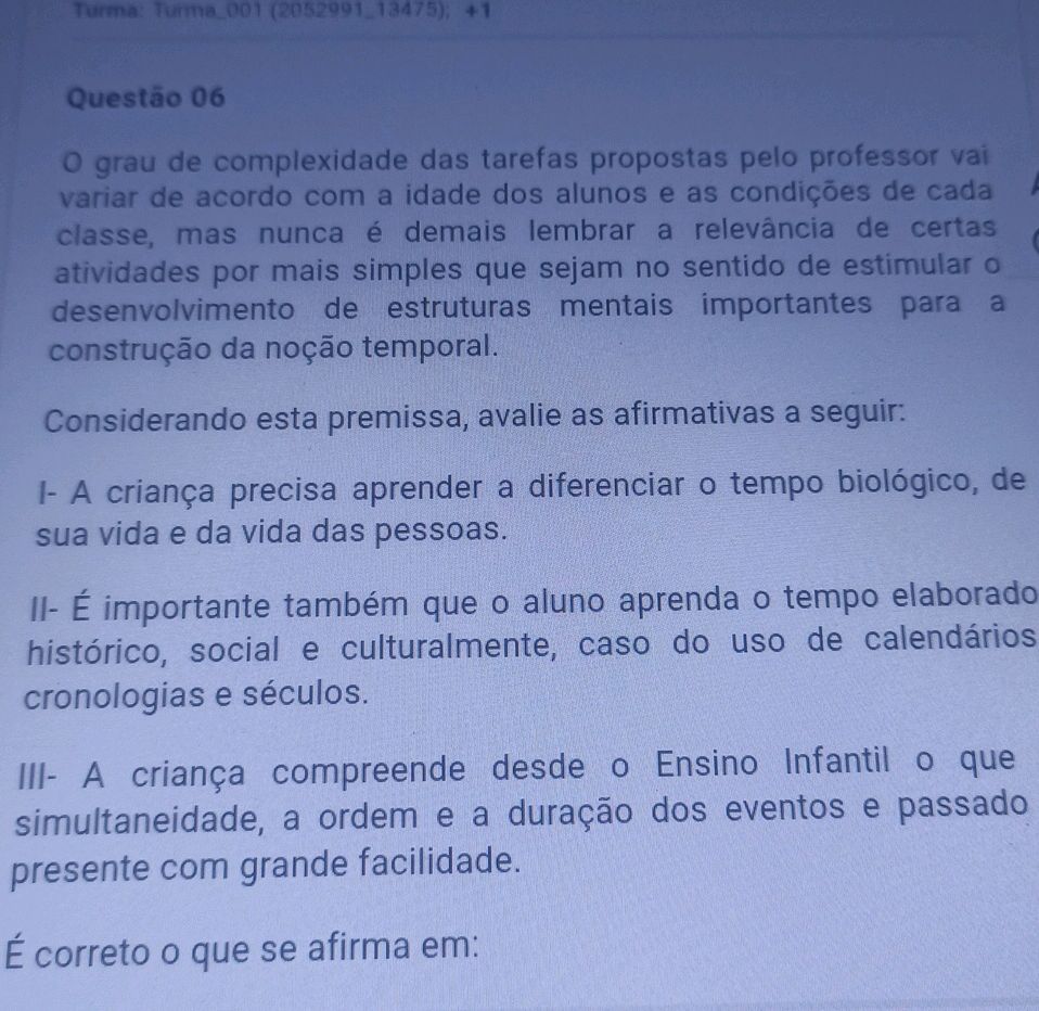 Questão 06 O grau de complexidade das | StudyX