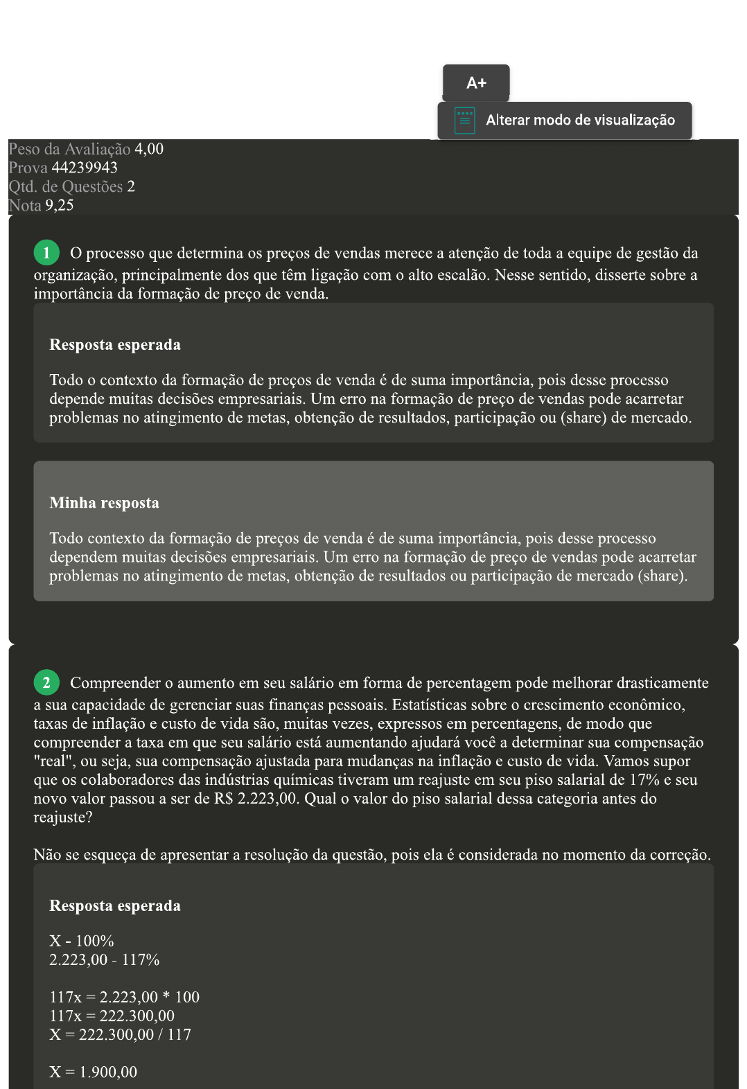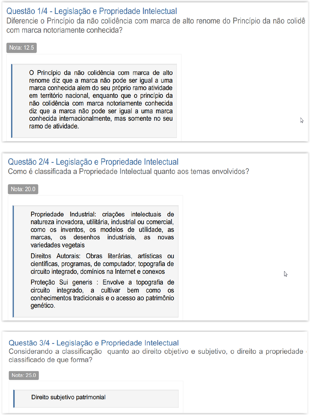 Nessa modalidade, a nota final é atribuída não apenas pela resposta correta, mas também pela qualidade da argumentação, estrutura, gramática e ortografia.