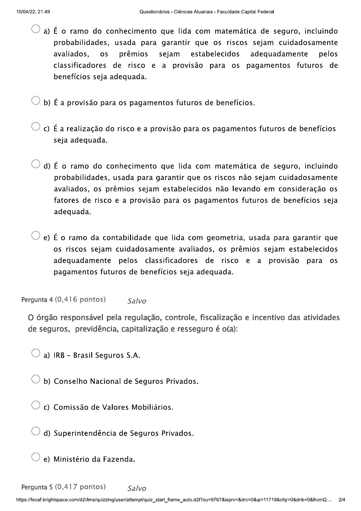 Alguns dos campos de atuação de um profissional de Ciências Actuaris incluem: