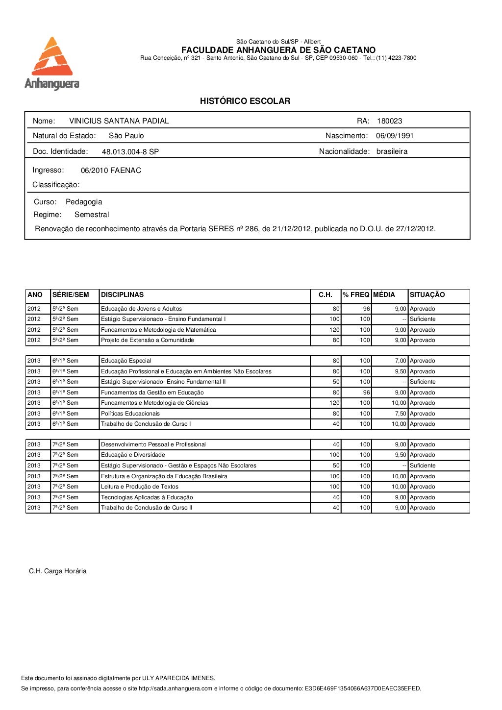 Modelo Historico EscolarEnsino Medio São Bernado Do Campo