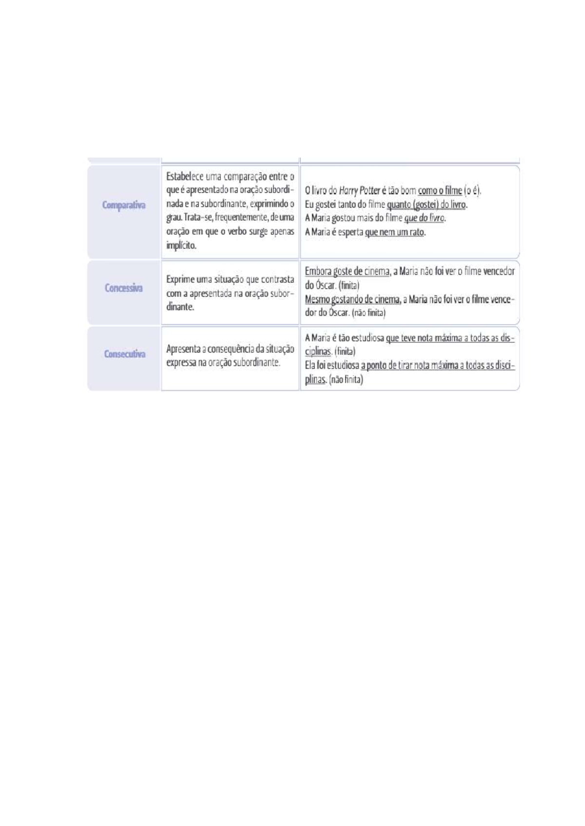 Por exemplo, na frase "Embora estivesse cansado, João terminou o trabalho", a oração subordinada "Embora estivesse cansado" expressa a ideia de que João estava cansado, apesar disso, a oração principal "João terminou o trabalho" afirma que ele concluiu a tarefa.