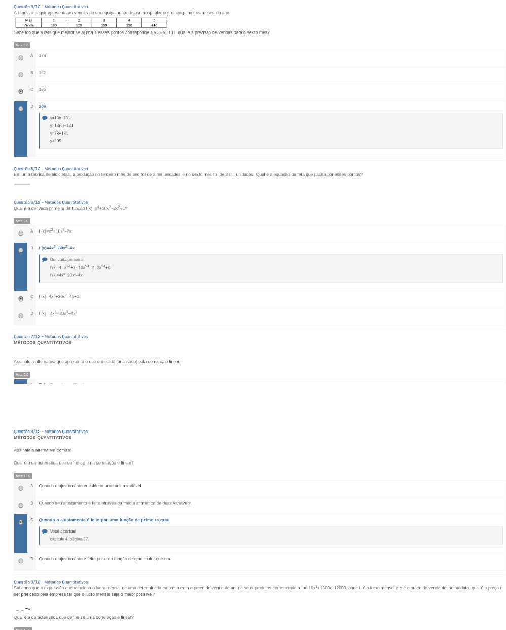 Alguns dos principais métodos quantitativos incluem: