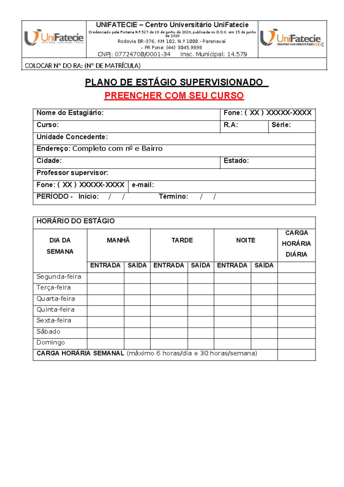 Plano De Estágio Em Serviço Social