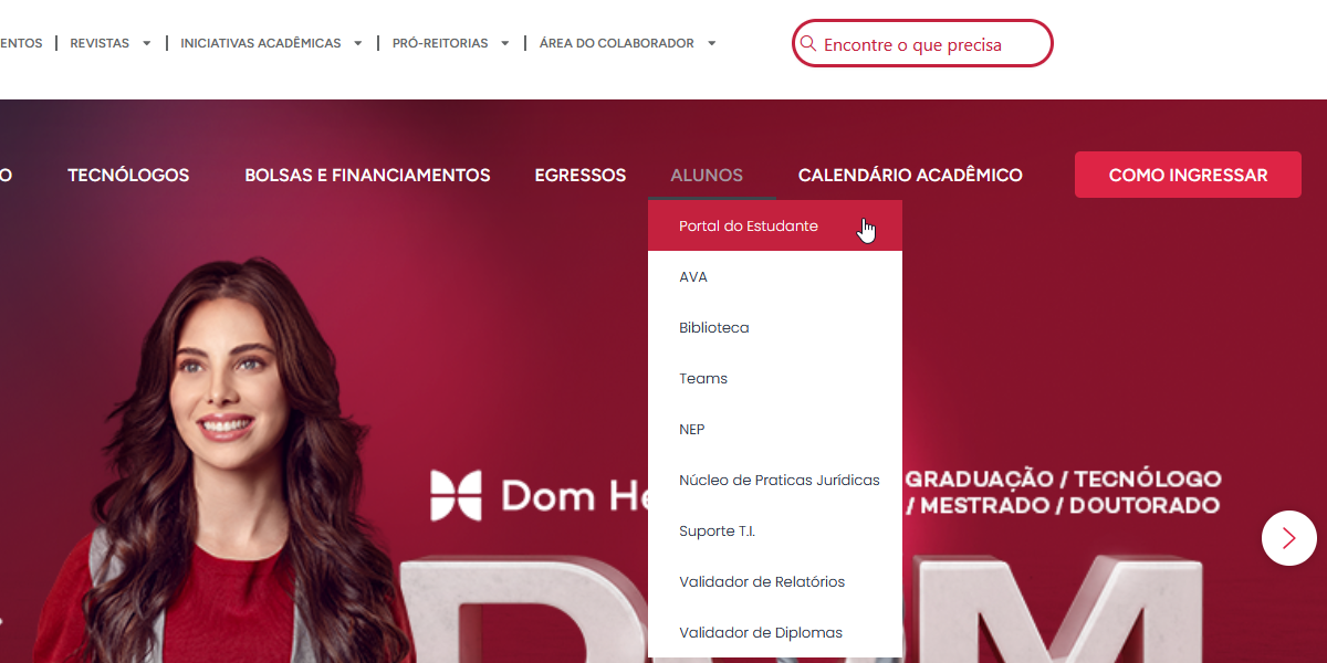 O Portal do Aluno Dom Helder é uma plataforma online desenvolvida para os alunos, pais e professores da rede de ensino da Universidade Dom Helder Câmara (UDHC). O portal oferece uma ampla gama de recursos e ferramentas que facilitam o acesso à informação, organização do fluxo de estudos e comunicação entre as partes interessadas.