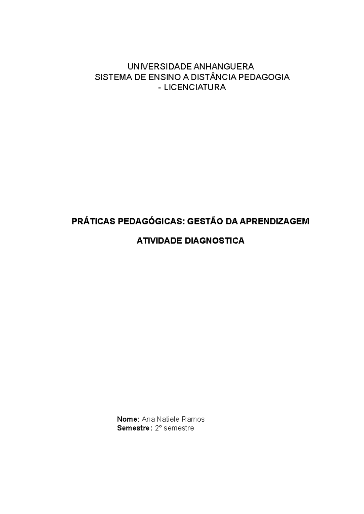 Portfolio Gestão da Aprendizagem Ana Natiele - UNIVERSIDADE ANHANGUERA