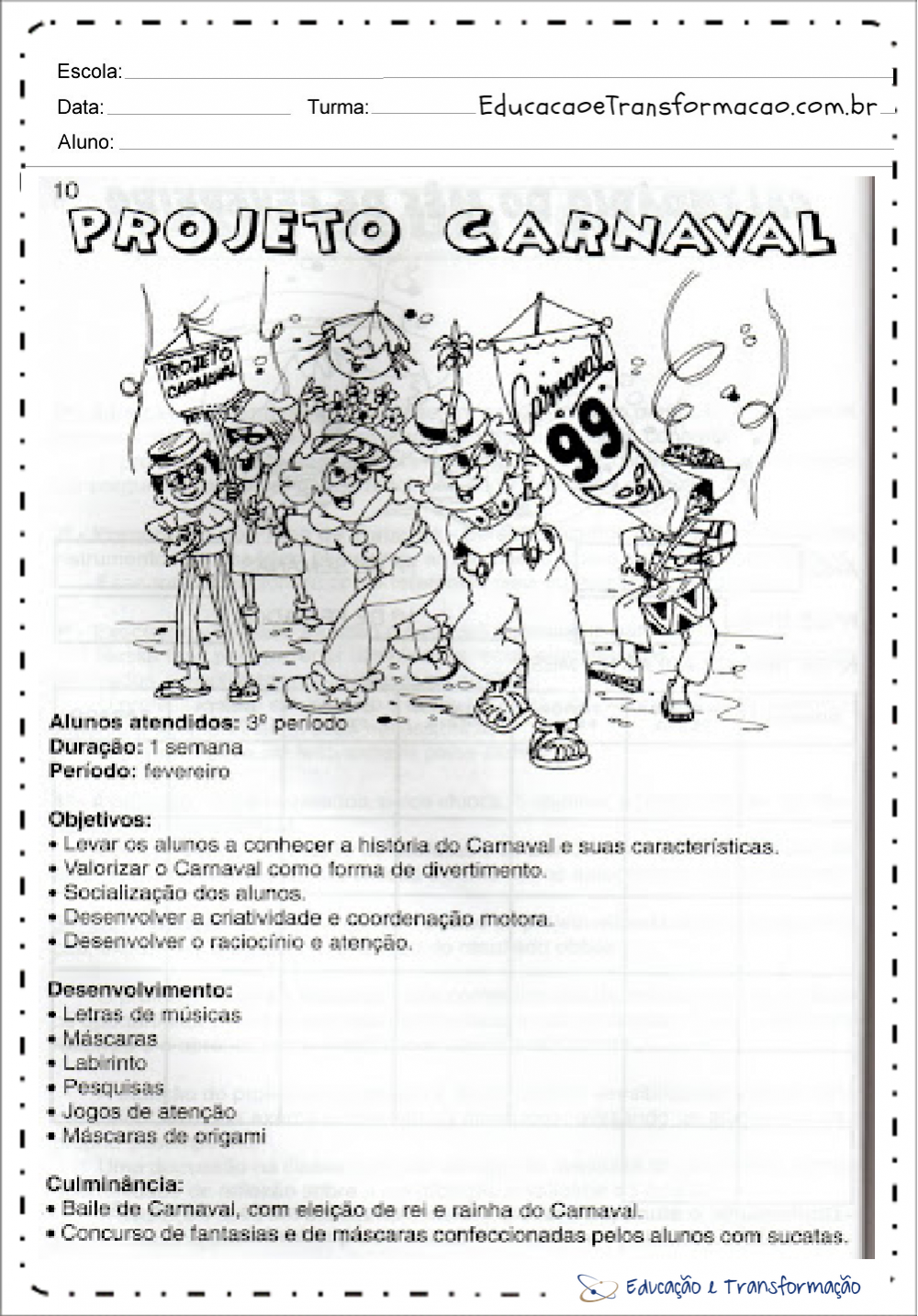 Projeto Carnaval Educação Infantil