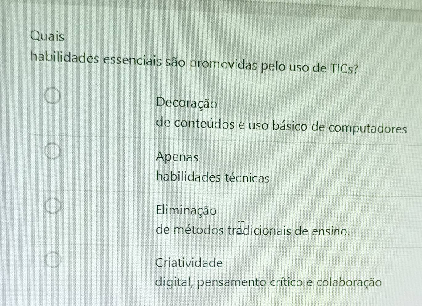 Resolvido:Quais habilidades essenciais são promovidas pelo uso de TICs