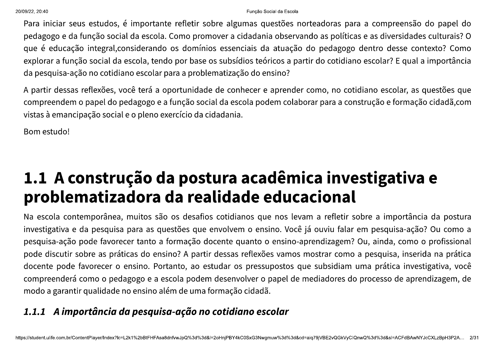 A função Social da Escola