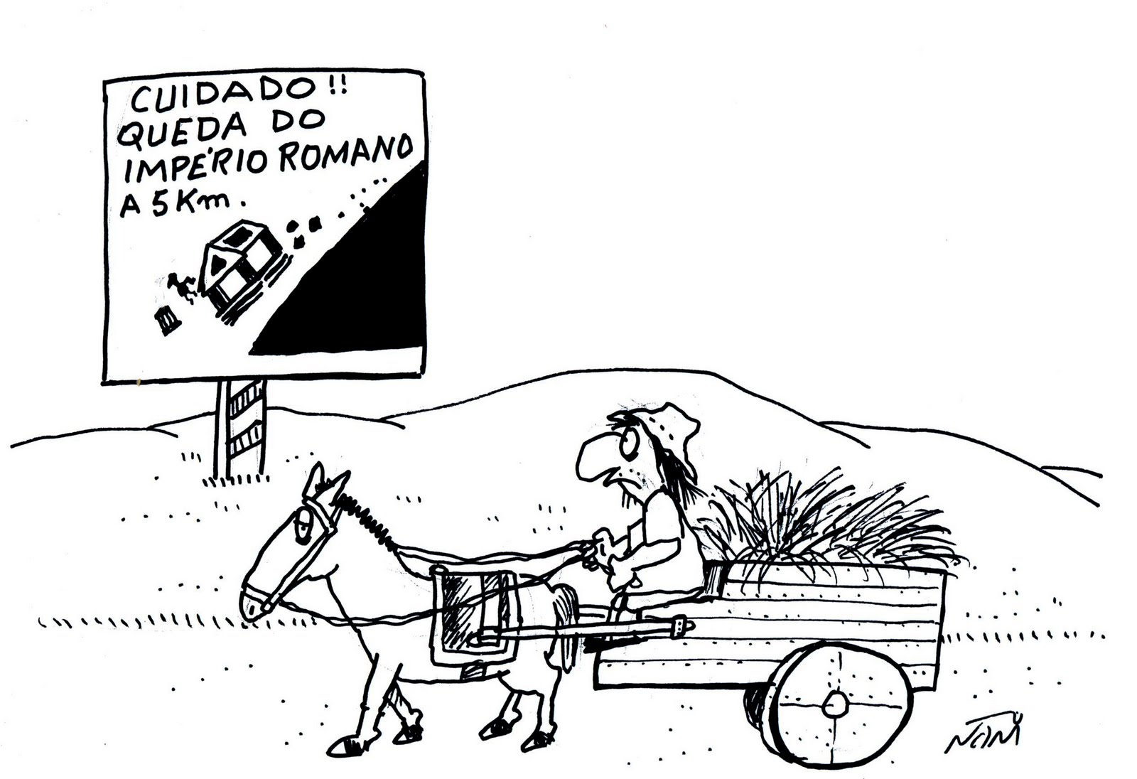 Sem a imagem da charge, é impossível identificar a passagem específica da história romana que ela retrata. No entanto, posso fornecer algumas dicas para você analisar uma charge histórica sobre Roma após tê-la encontrado:
