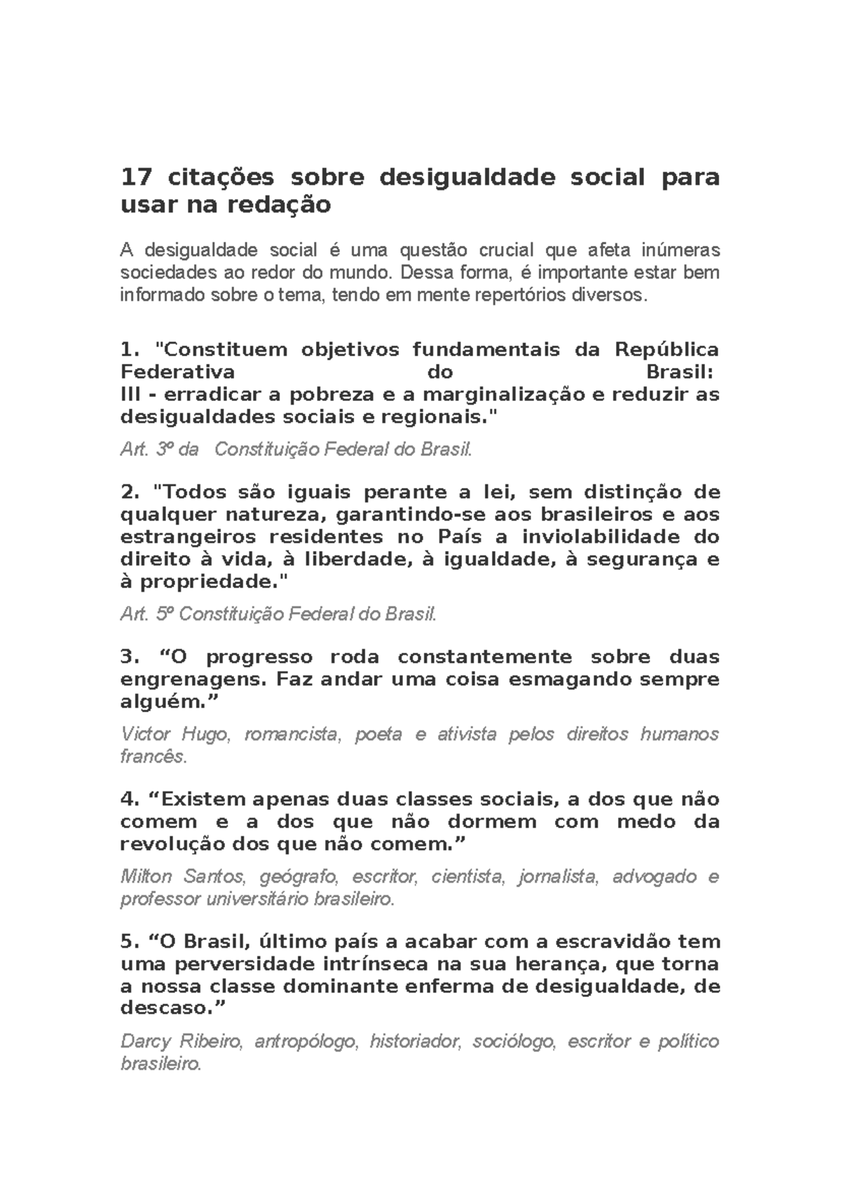 Atividade Sobre Desigualdade Social - NAZAEDU