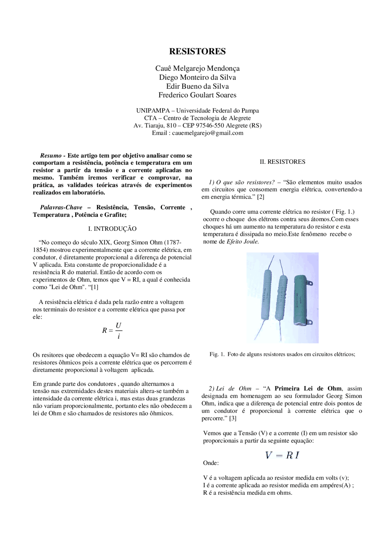 Resistores ôhmicos e não-ôhmicos - Experimento prático sobre resistores